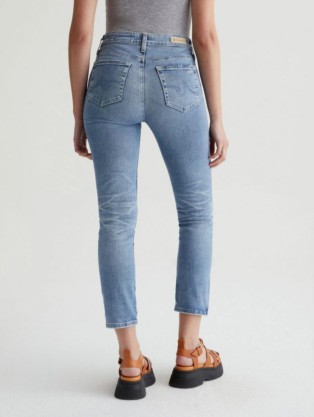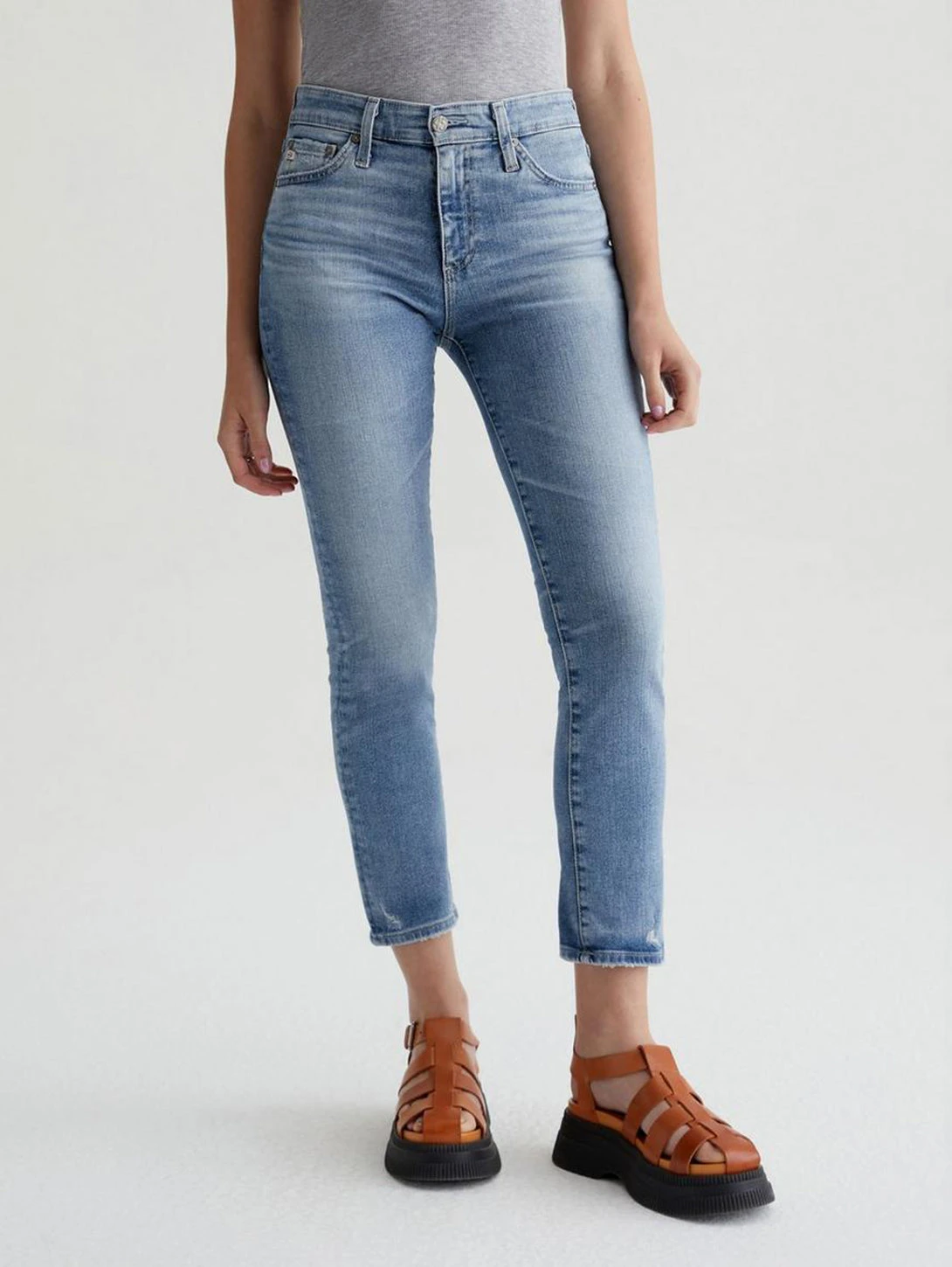 Mari Crop is a high-rise straight leg jean that’s cropped just above the ankle. It’s featured in a 20-year AG-ed™ light wash that’s been faded and punctuated with a bit of distressing at the hems. The high-waist silhouette fits easily around the hips with a straight leg and slim leg opening. This women’s high-rise jean is designed in 10 oz. Empower Denim with super-stretch construction.