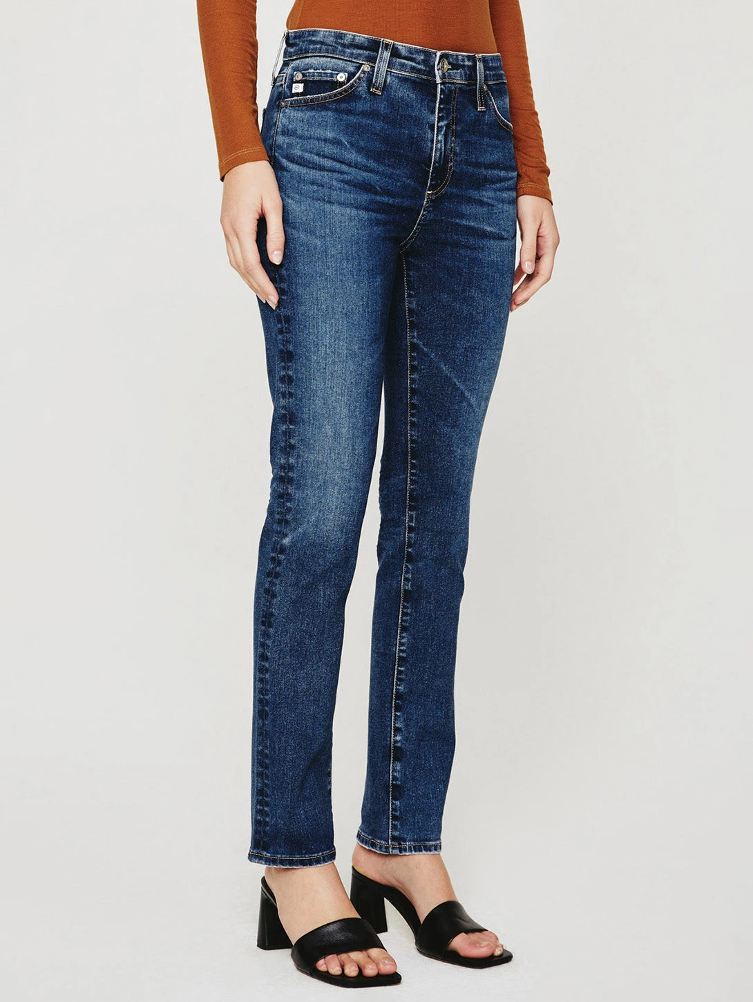 Mari is a high-rise straight-leg jean featuring an 8-year dark wash with fading, and whiskering, along the front. Offers a flattering high-rise waist and fits easily around the hips, finished with a straight leg and subtle slim leg opening.Â