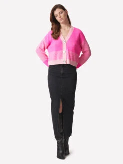 The Alyssa Star fringe crewneck is crafted of 100% ethically sourced cashmere. It has contrast antique white stars, some of which have fringe details, scattered throughout the sweater. This sweater is fun and playful.