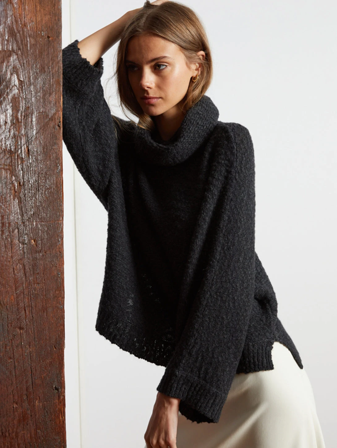 The Batwing Sweater – Wall Street is a perfect winter companion. Crafted from 100% cashmere, it features a relaxed fit, a cowl neck, and long batwing sleeves for cozy warmth. Ideal for chillier days, you’ll be stylish and comfortable all season long.