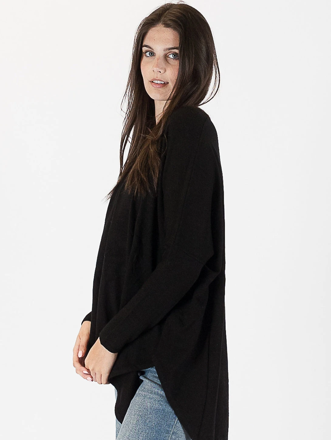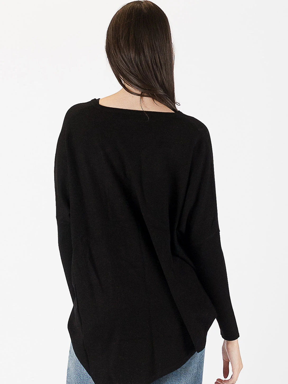 This sweater is designed to make a statement while keeping you cool and comfortable throughout the seasons. The V-neckline adds a touch of femininity and sophistication, making it suitable for both casual and dressier occasions. The fabric drapes beautifully and feels soft against the skin, ensuring a comfortable and flattering fit. The asymmetrical hemline adds a touch of uniqueness and contemporary flair to the overall design.