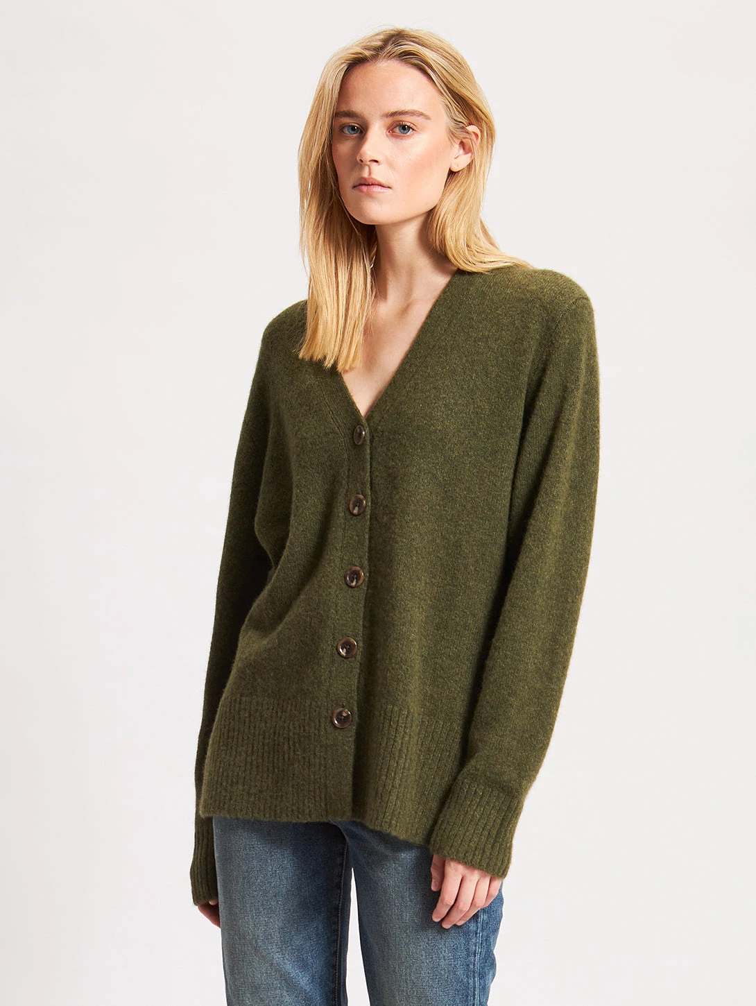 This Button Cardigan – Atlantic offers a luxurious blend of wool and cashmere, providing the perfect balance of warmth and softness. The elegant mid-length design features a v-neckline, long sleeves, front button closure, and side slits for added breathability. A stylish and comfortable addition to any wardrobe.