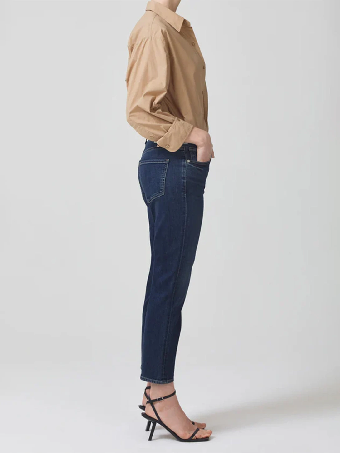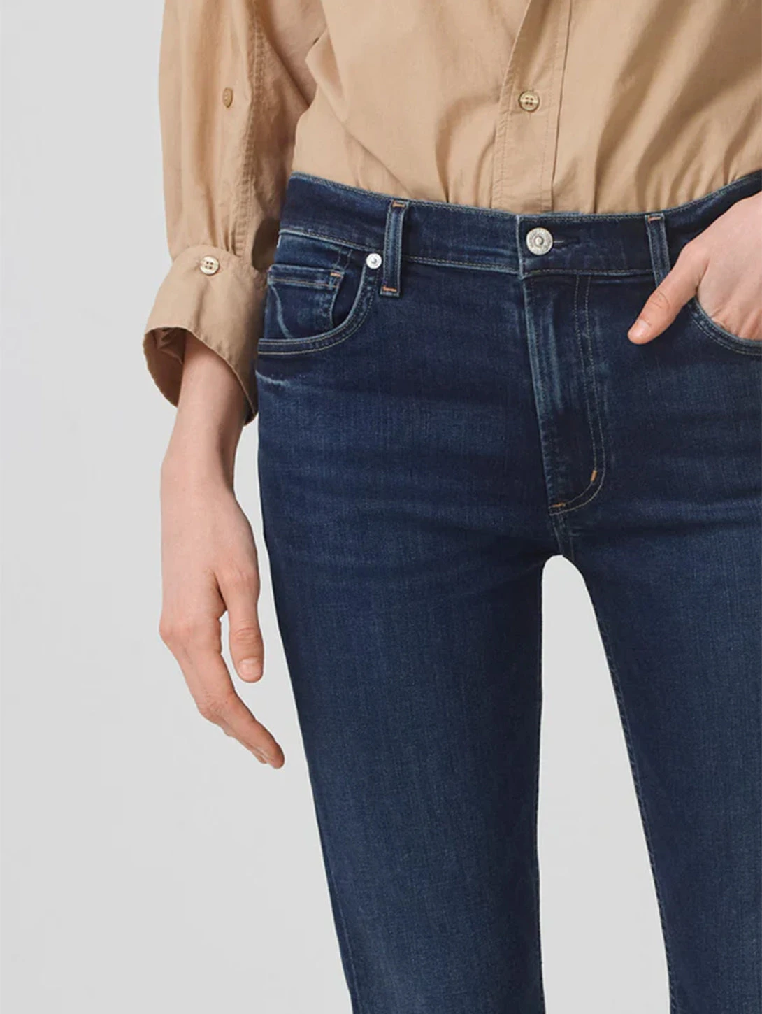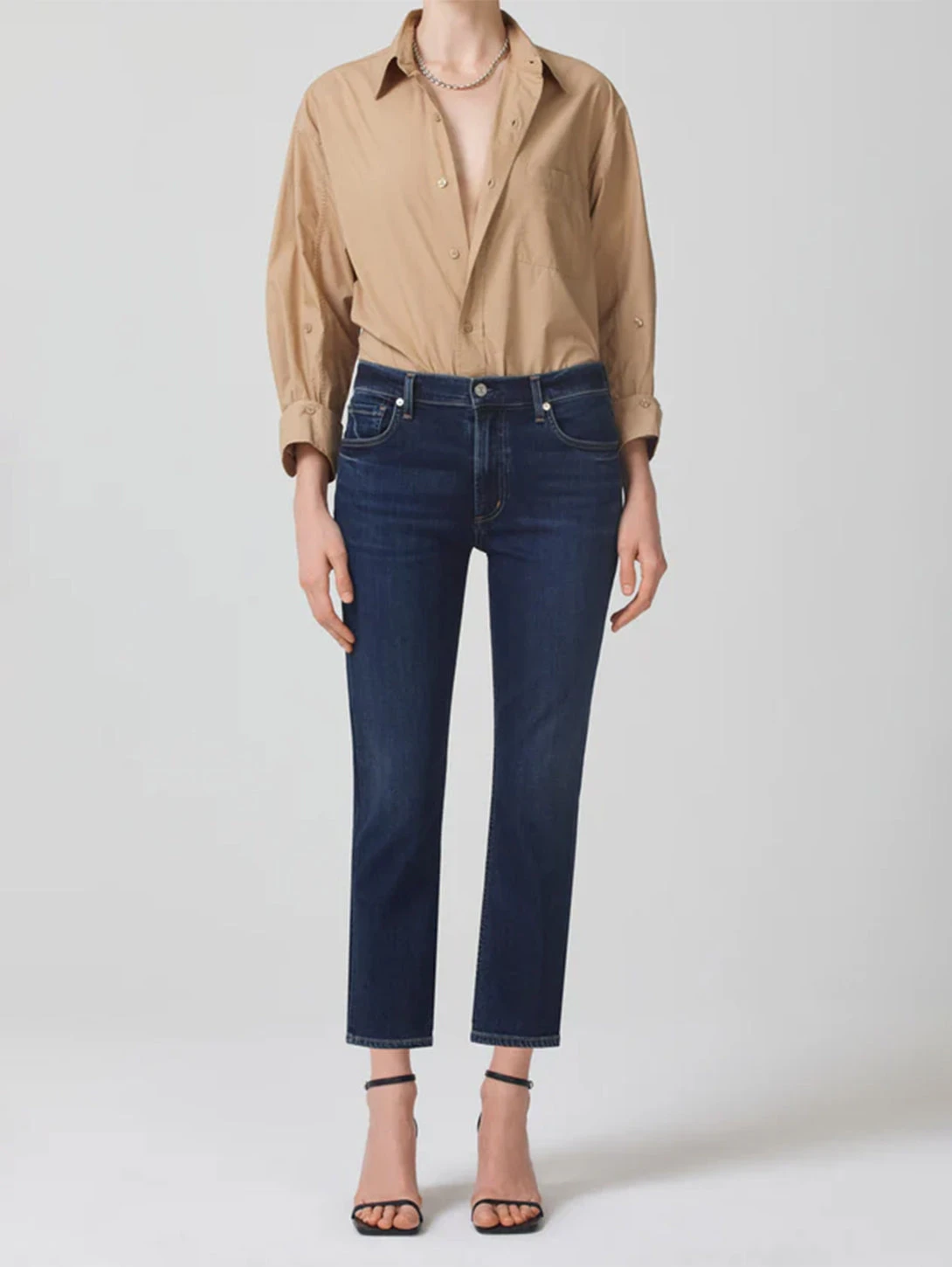Isola Straight has a mid-rise and ultra-flattering fit. The Isola is endlessly versatile and slim to the knee with a 26″ straight inseam.