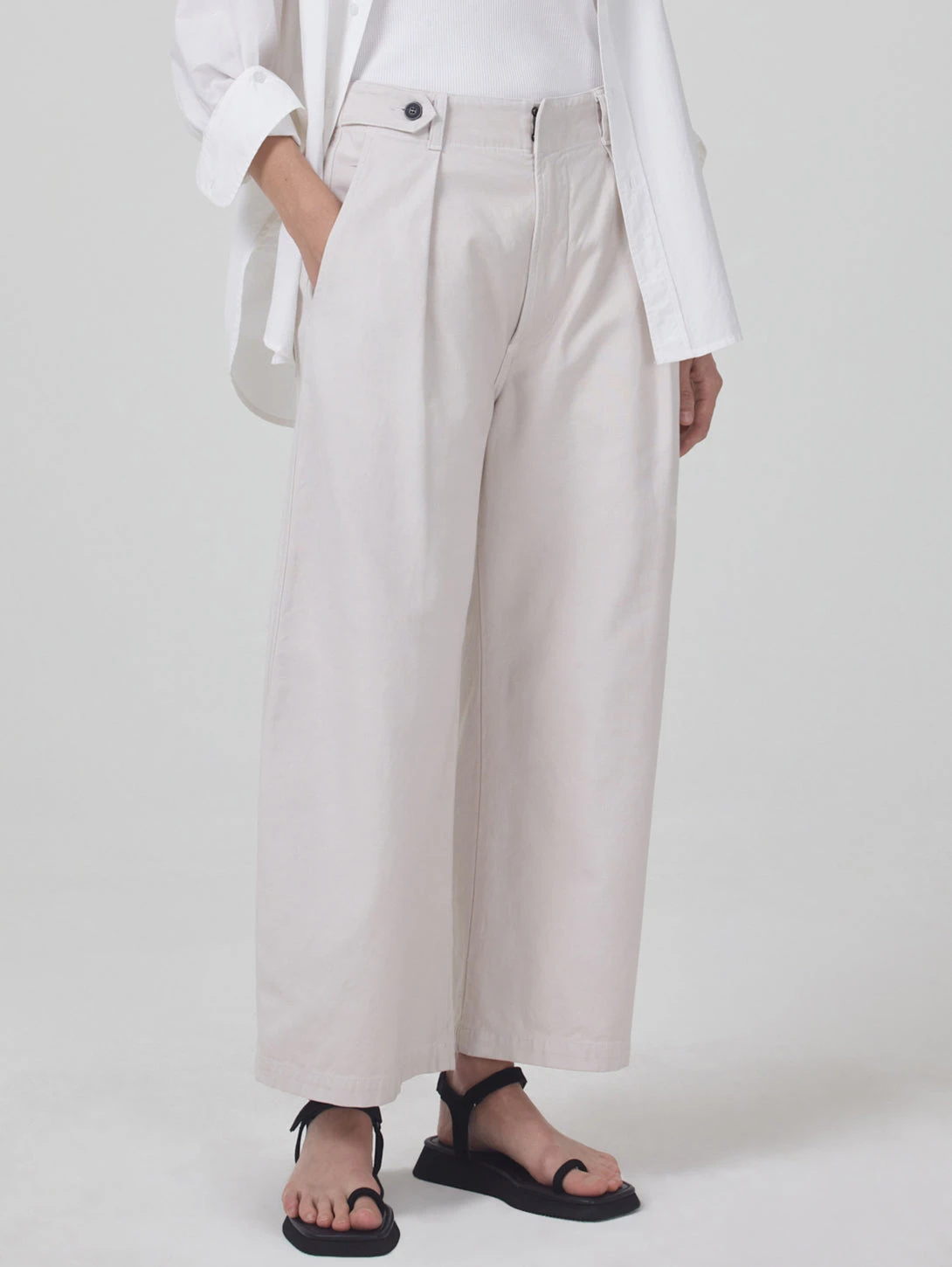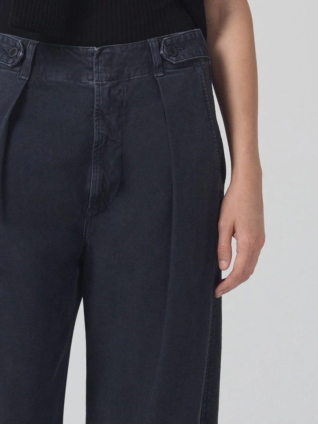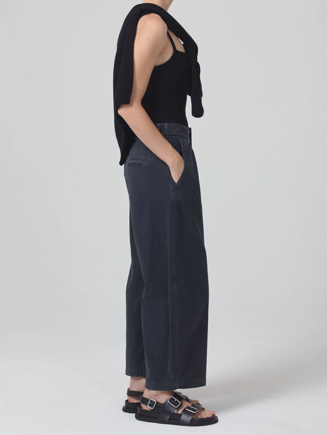 Payton Utility Trouser is crafted from a luxe, lightweight twill. The voluminous leg shape is tapered with expertly placed pleats.