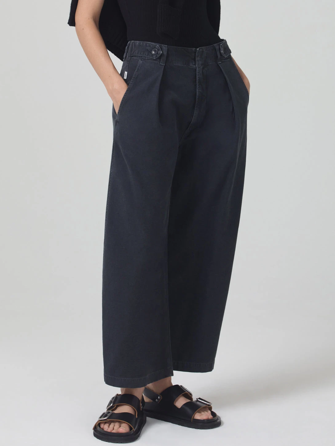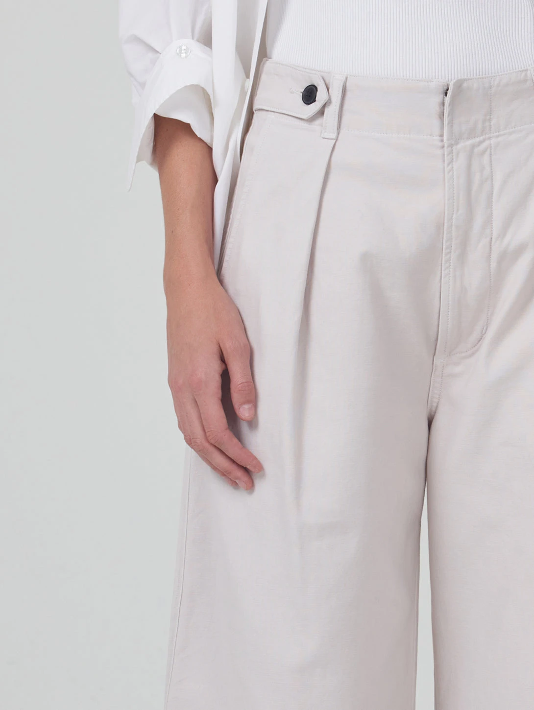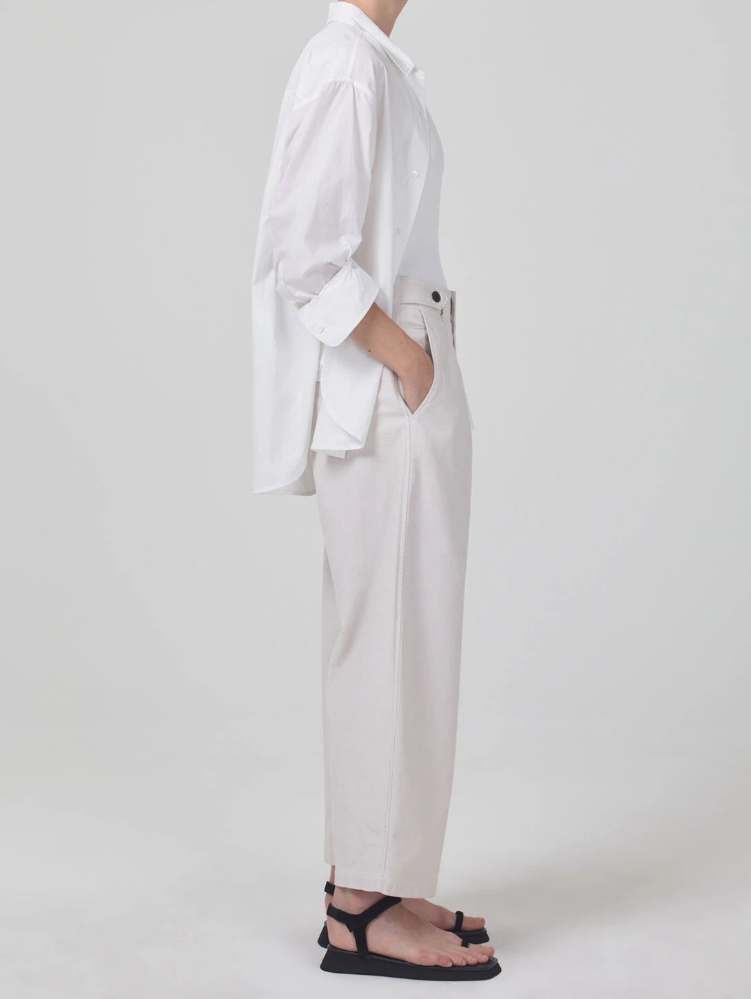 Payton Utility Trouser is crafted from a luxe, lightweight twill. The voluminous leg shape is tapered with expertly placed pleats.