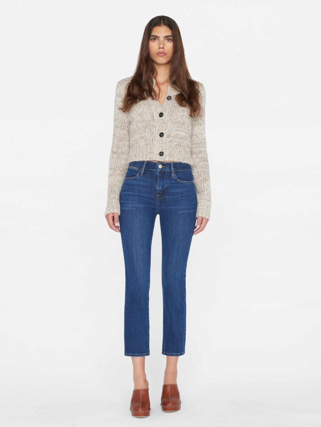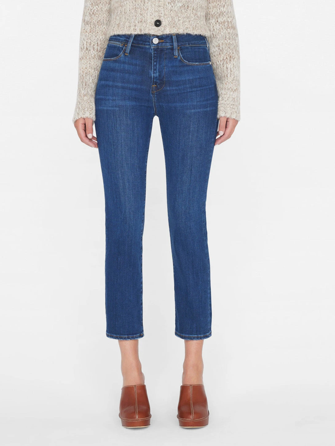 Le High Straight is designed with a fitted high-rise waist and flattering straight leg. Crafted from a sustainable stretch cotton blend with the softest hand.