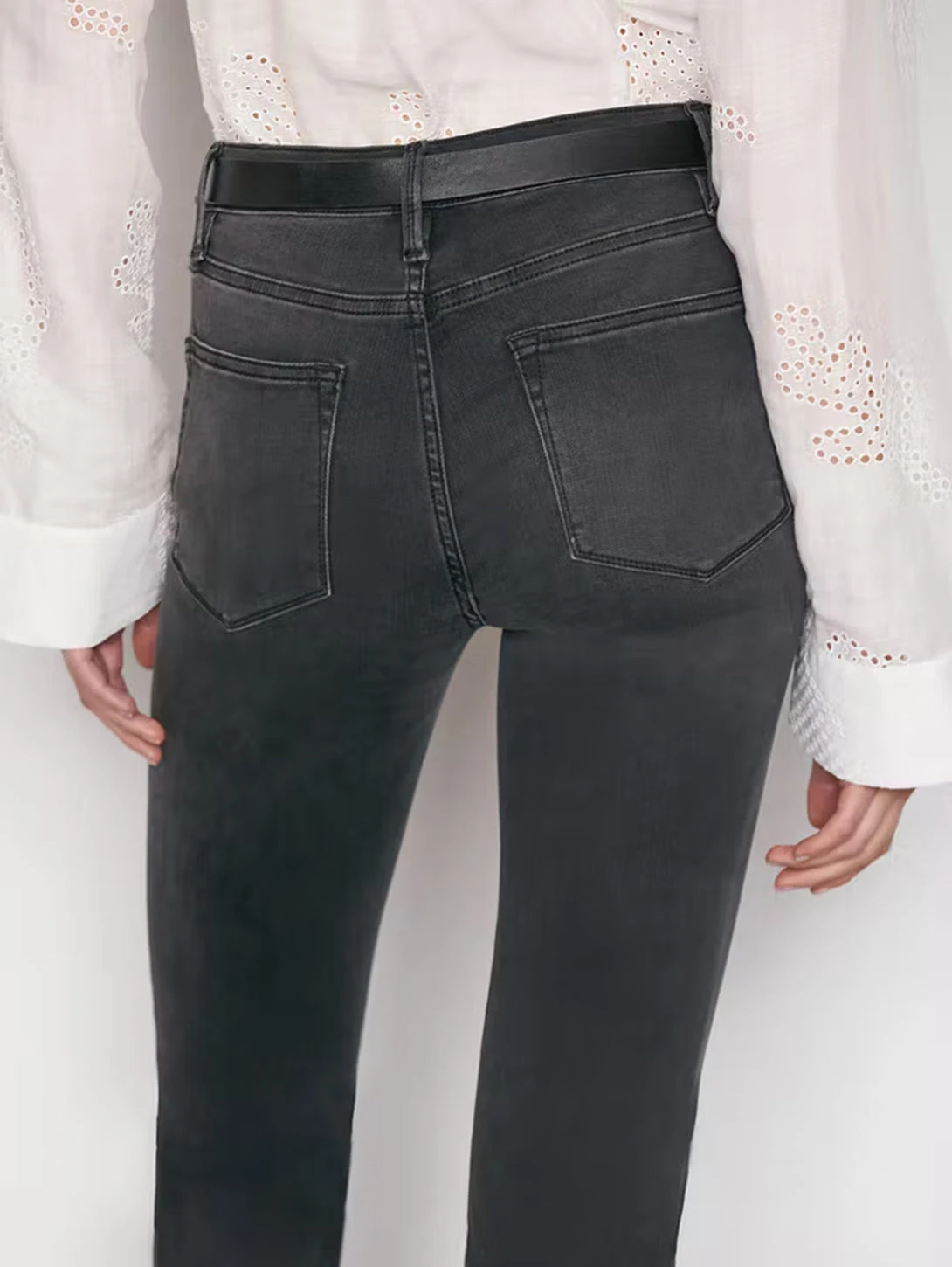 Mardel is a tailored straight-leg jean with a flattering nip-in at the knees. Featuring a high-rise waist and a streamlined fit through the hip and thigh. Crafted from comfortable super-stretch fabric, this faded black fit has a finished hem and a lived-in look perfect for everyday outfitting.