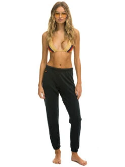 This is the most comfortable sweatpant made from a tri-blend fabric. It features an elastic drawstring waist, elastic cuffs, and Heart graphic on the side.