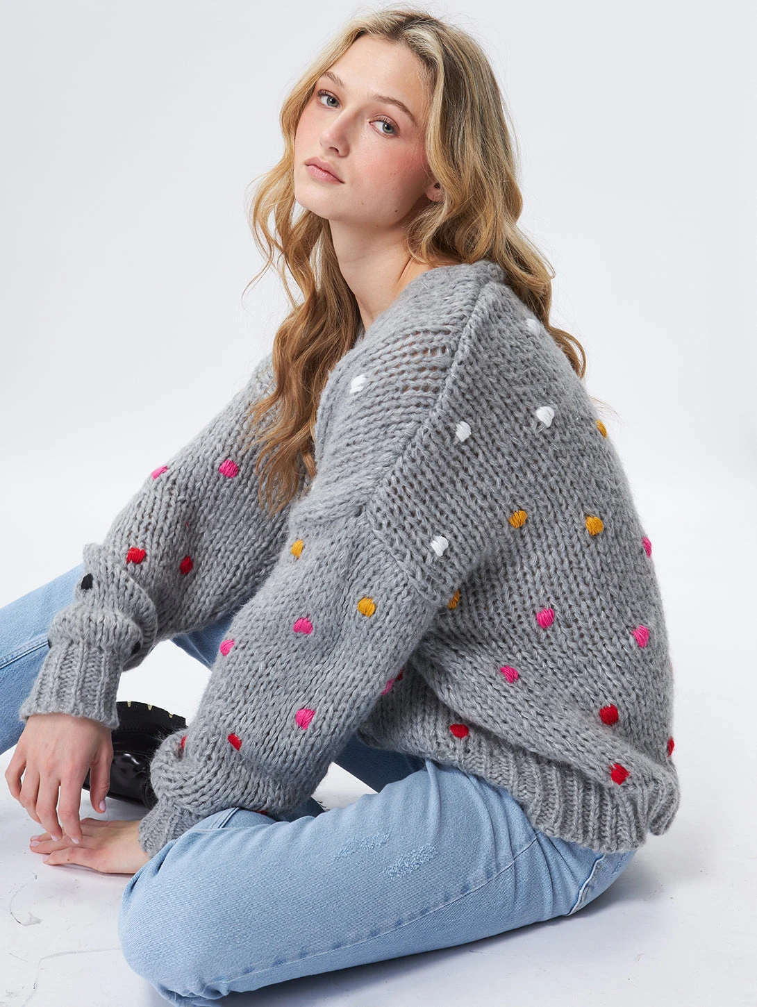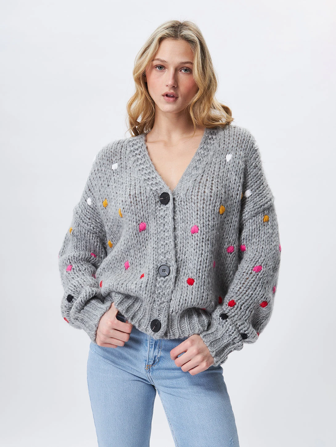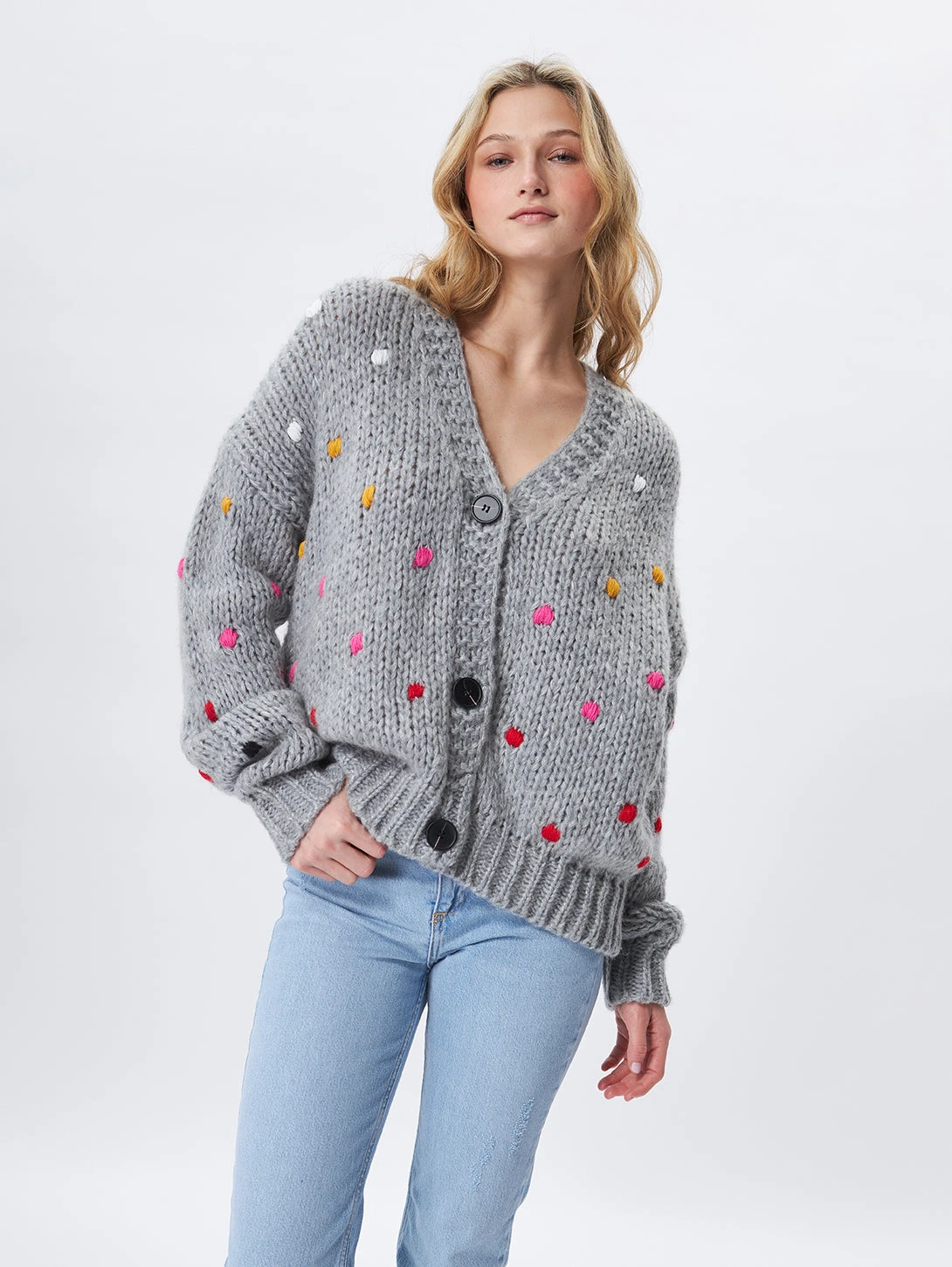The Jack will elevate any casual Fall look this season. It has a handknit appeal and features colorful embroidered polka dots embroidery throughout.