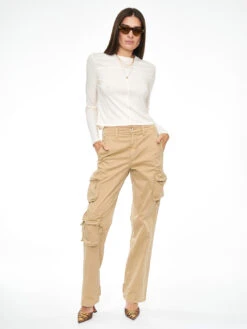 Cargo on the go. This cargo pant is made from a twill fabrication and has a relaxed fit. It features a mid-waist, classic cargo pockets, elasticized cuffs and ankle zip detail.