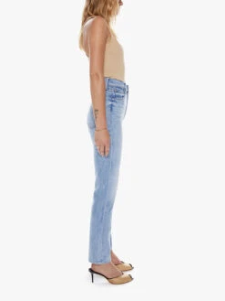 Out of your league. This perfect high-waisted straight leg has a 31-inch inseam and a clean hem. Cut from denim with a touch of stretch, Off Limits is a dark-blue wash with subtle fading and whiskering.