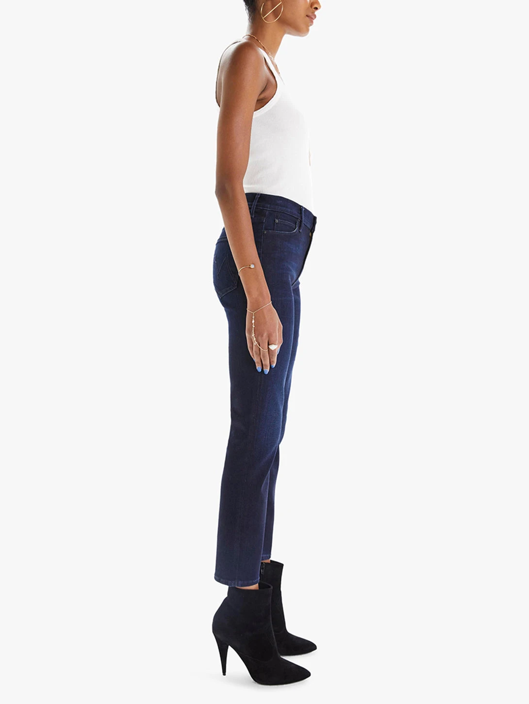Any minute now. Our most popular mid-rise jeans have a straight leg with an ankle-length inseam and a clean hem. Cut from comfortable stretch denim, Now Or Never is an inky dark blue wash.