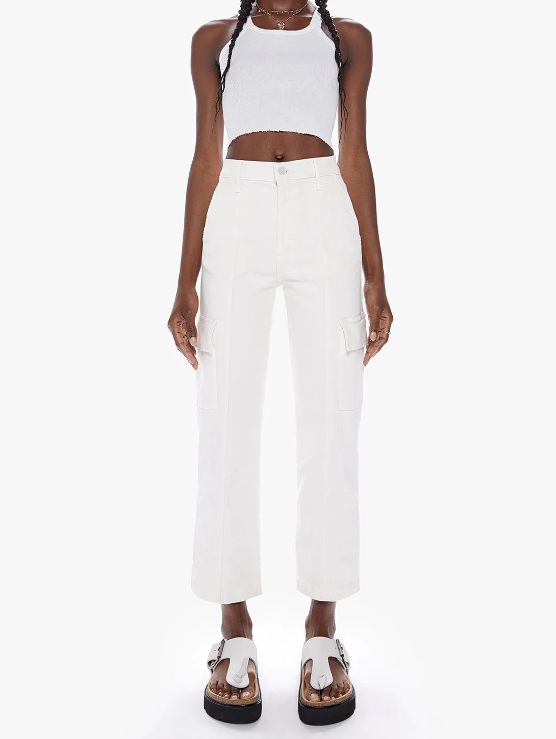 Puff piece. High-waisted ankle-length pants with a wide straight leg, cargo pockets and seams down the front. Cut from comfortable stretch fabric, Cream Puffs is an off-white hue with tonal hardware.