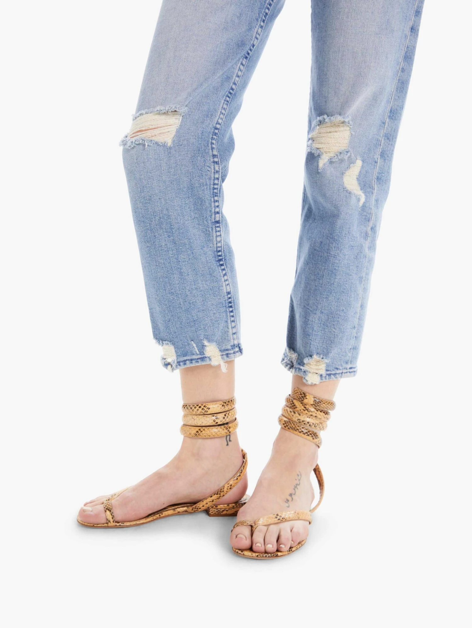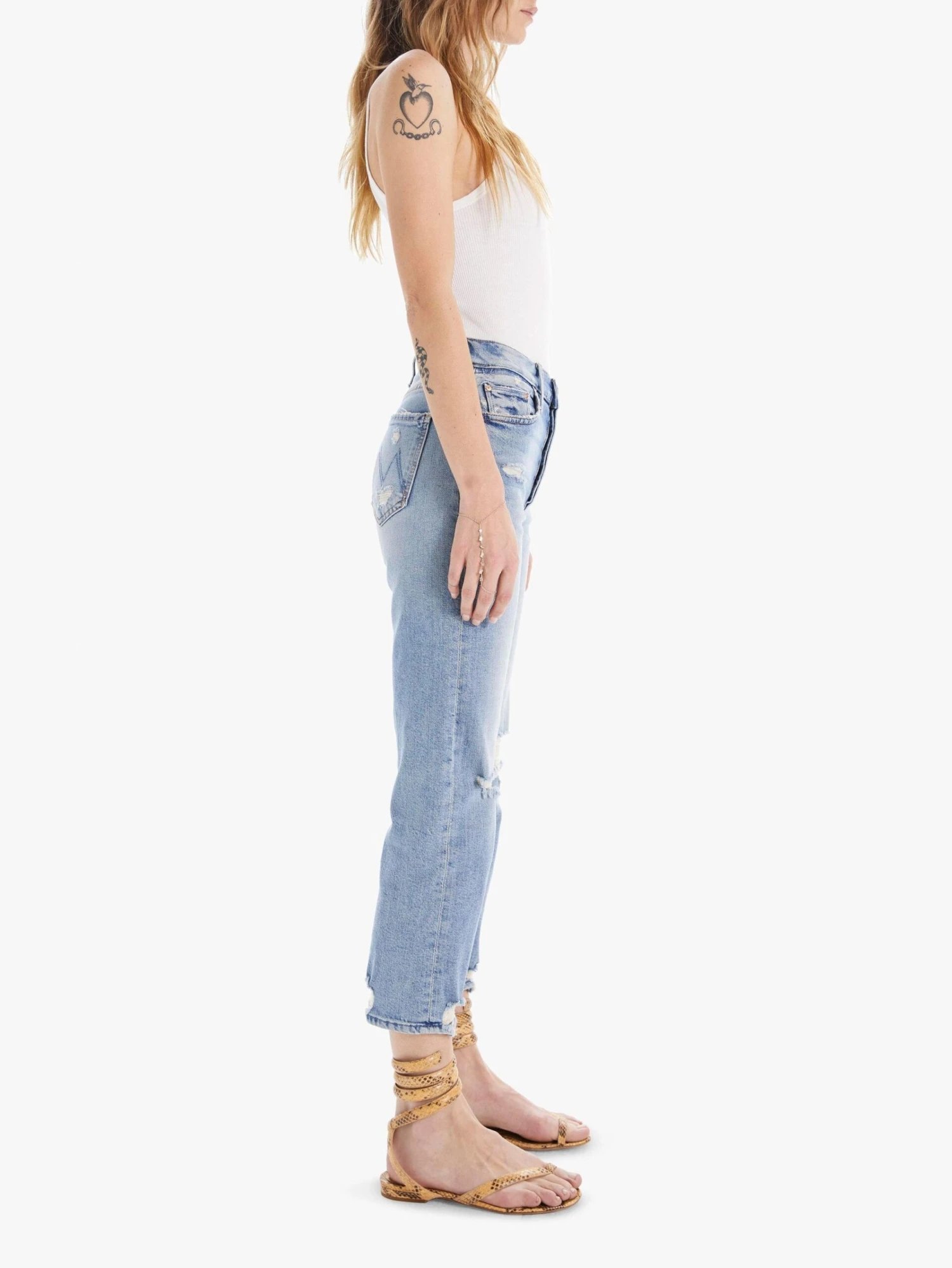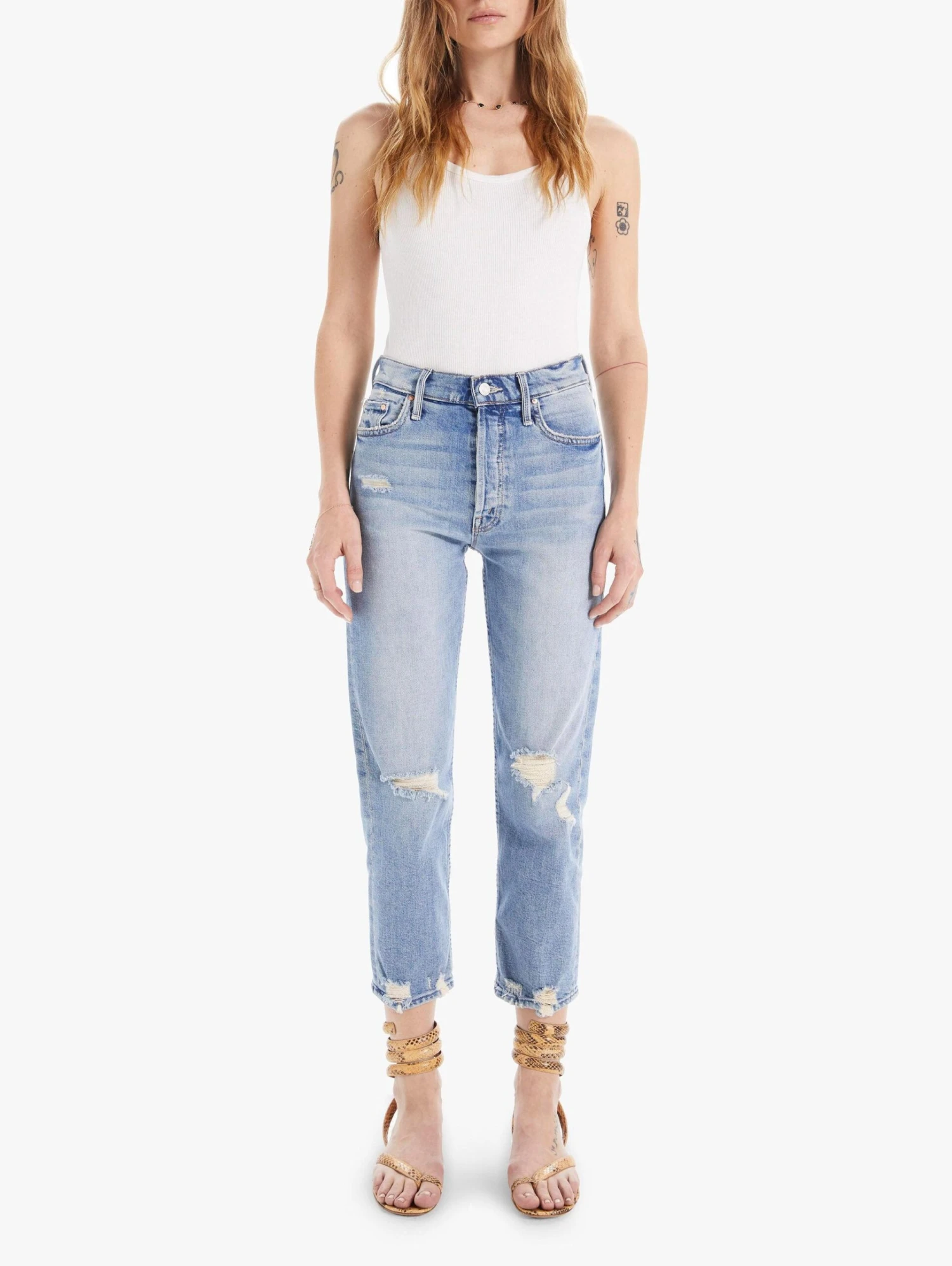 Summer feeling forever. This jean has a high rise and a relaxed fit. It features the classic 5 pocket detail with zip fly, cuffed hems and distressed details for the vintage look.
