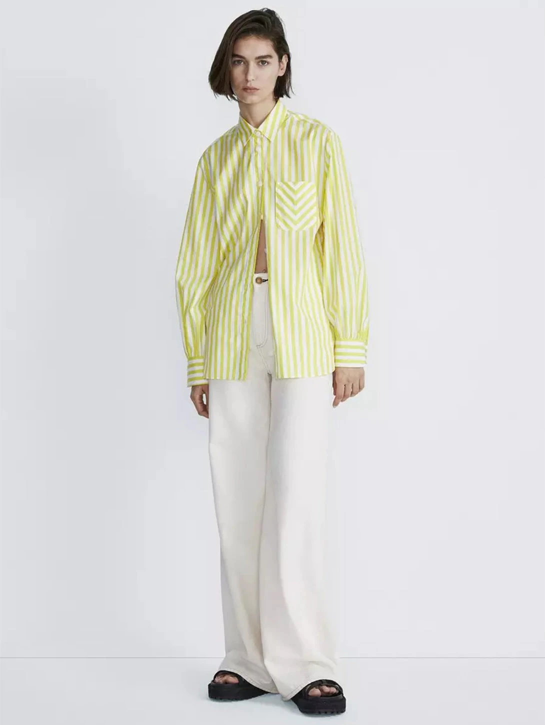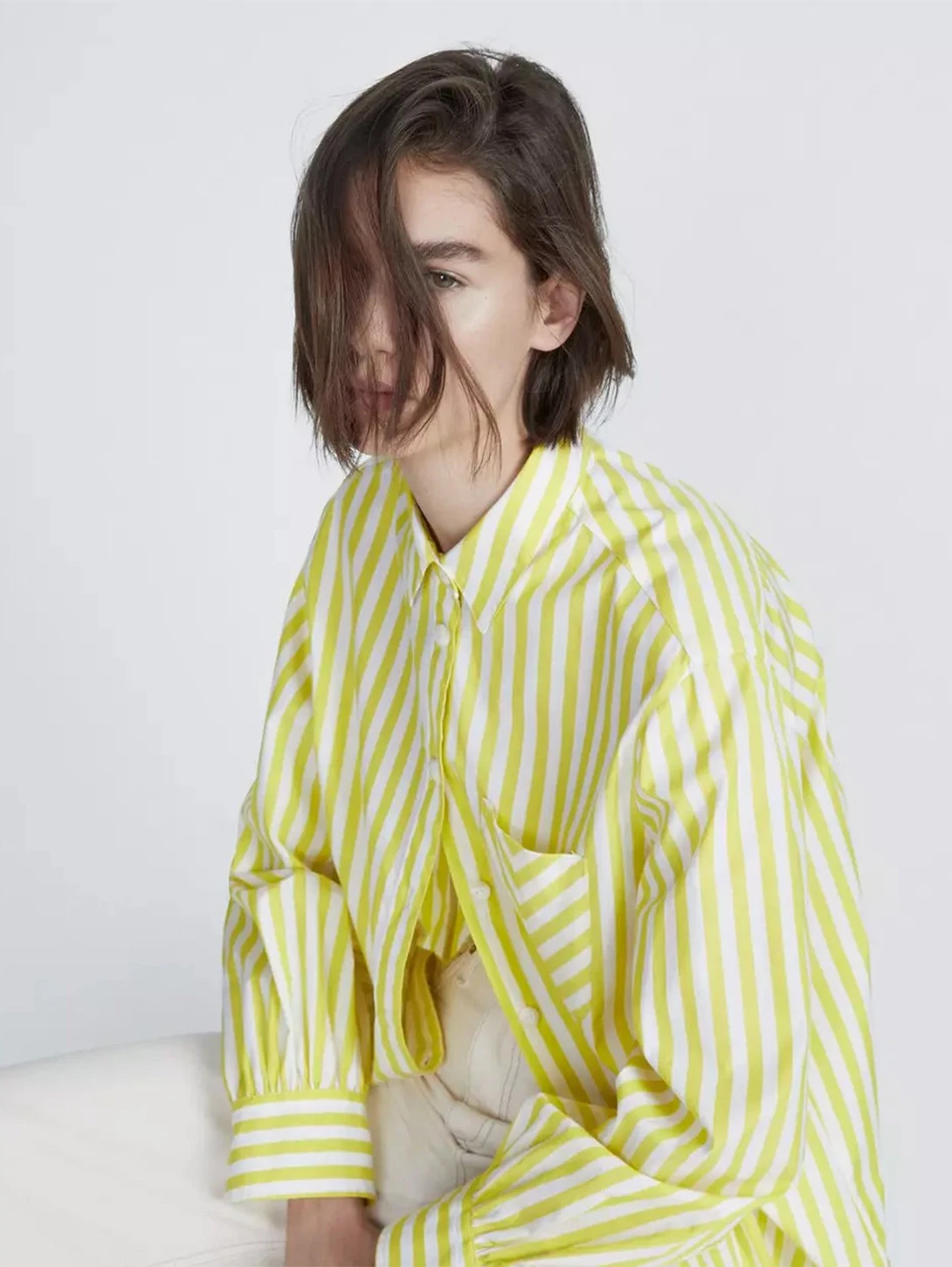 The Maxine is your timeless button-down elevated with shirring at the cuff and a mitered pocket. Crafted in our signature cotton poplin for the ultimate wardrobe staple.
