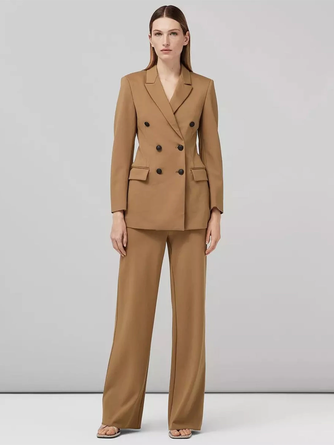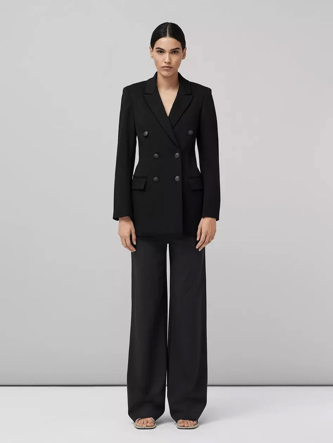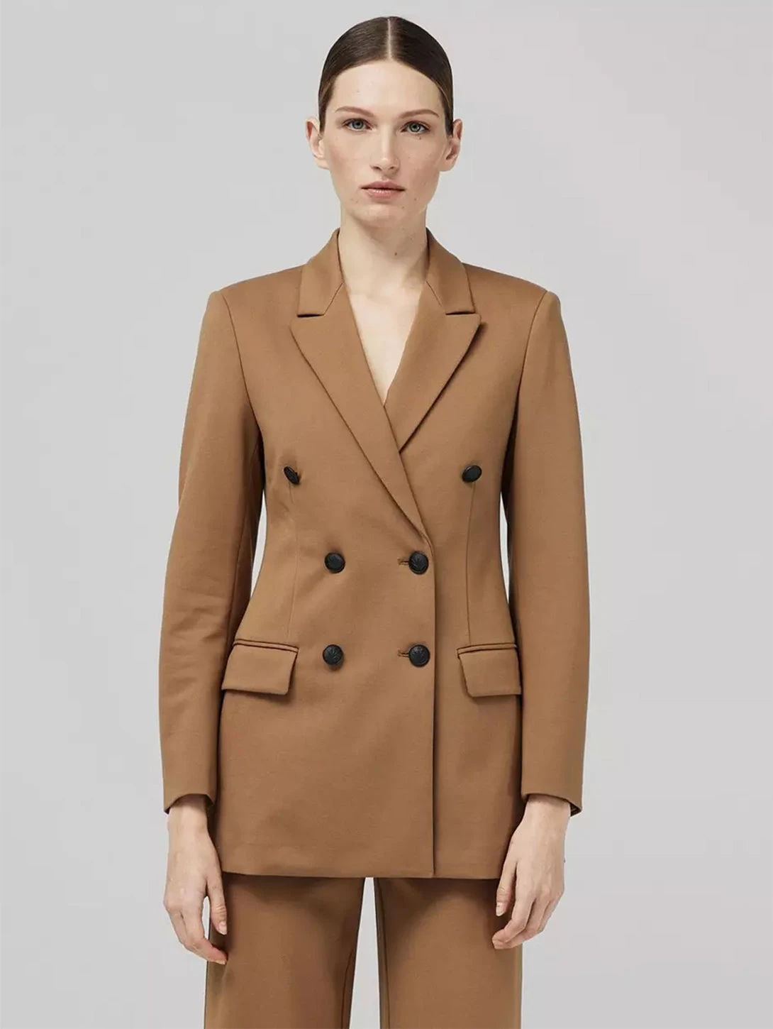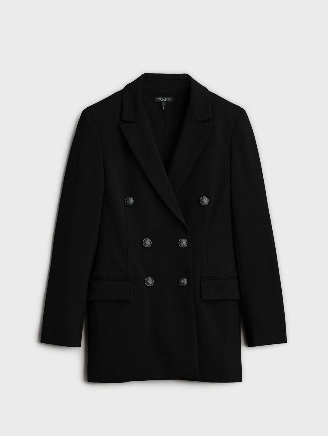 This sophisticated double-breasted blazer is fitted at the waist for an ultra-flattering fit. Crafted from a soft Ponte fabric and finished with our signature gold dagger buttons.