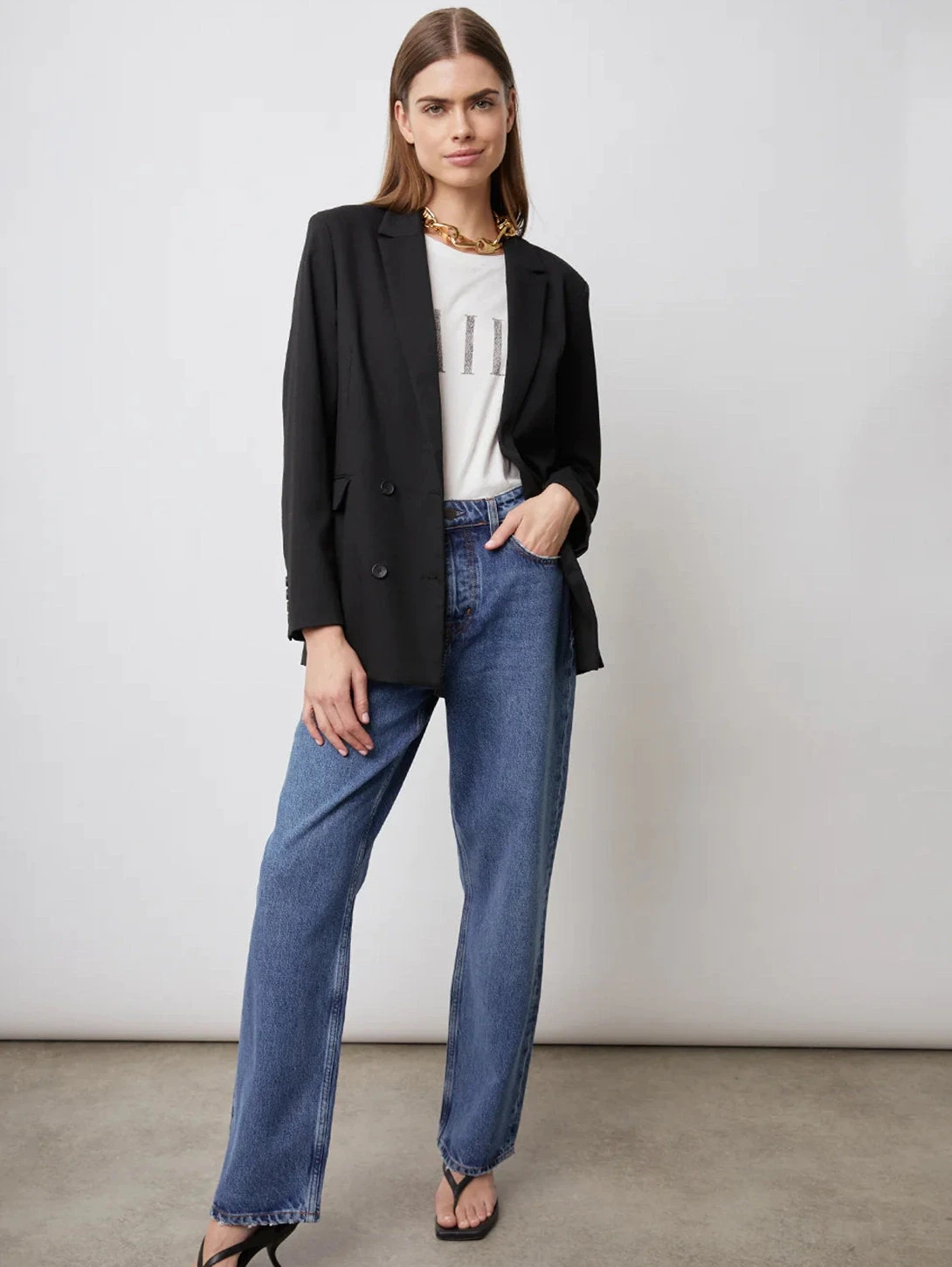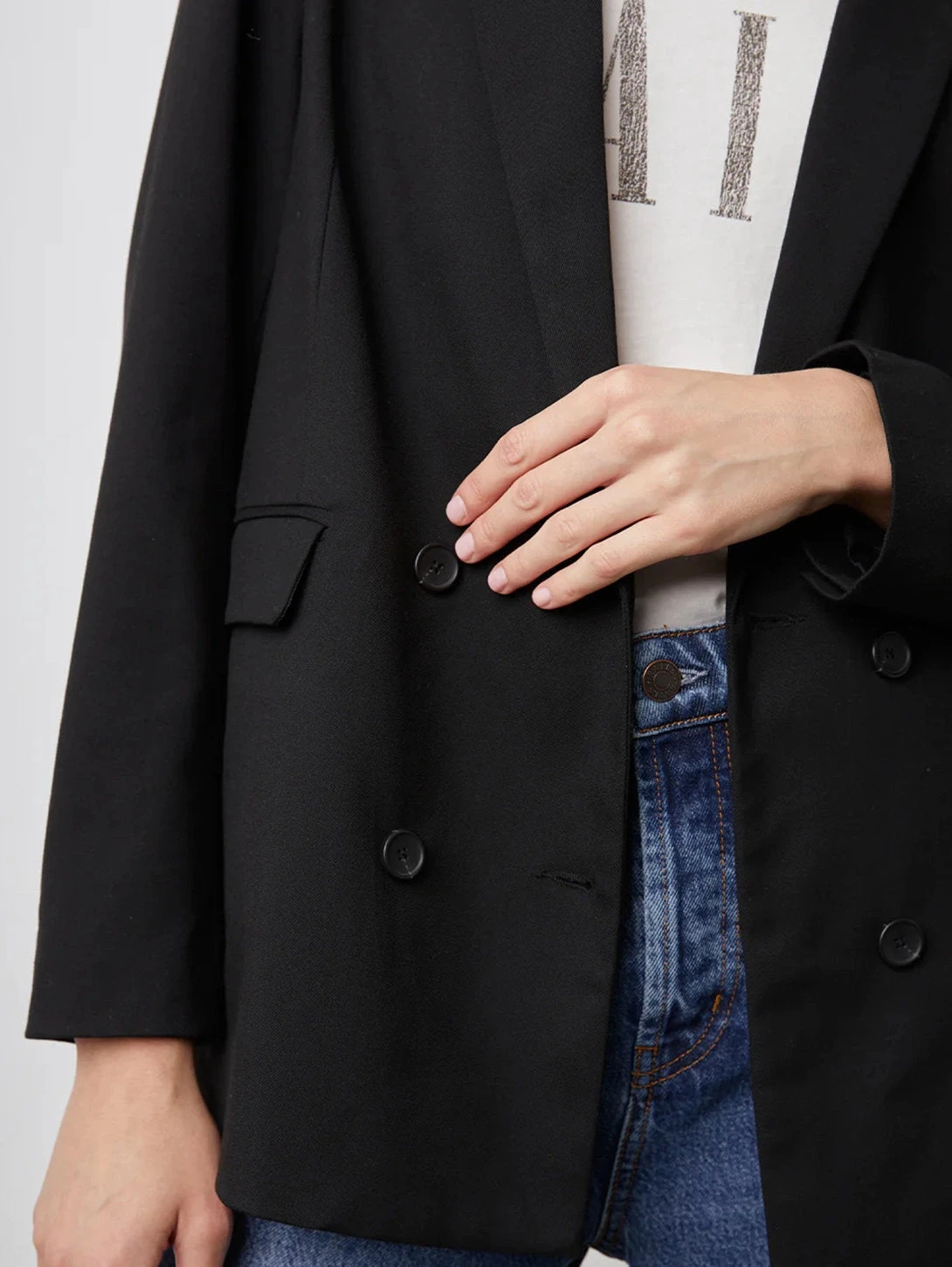 Tailored to perfection, this menswear-inspired blazer will take your style to the next level. Made from heavyweight linen, this double-breasted blazer jacket features functional flap pockets and a notched lapel collar.Â