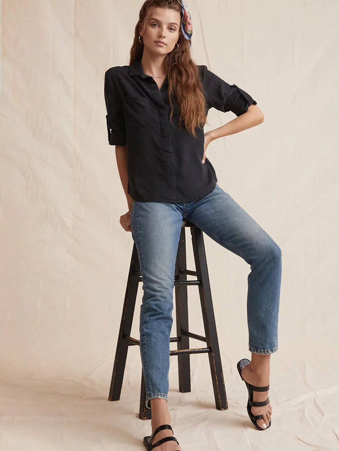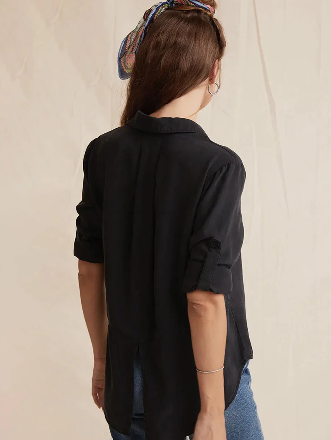 The split back button down is a signature favourite designed with front buttons, two chest pockets, roll-tab sleeves, and split back detail. This versatile top will surely become a staple in your wardrobe!