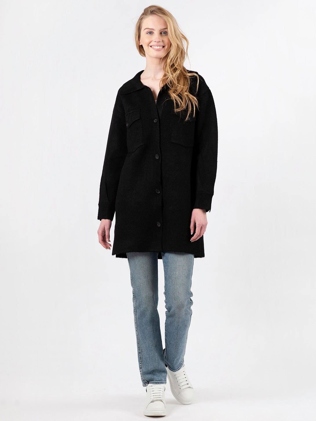 - Front button closure